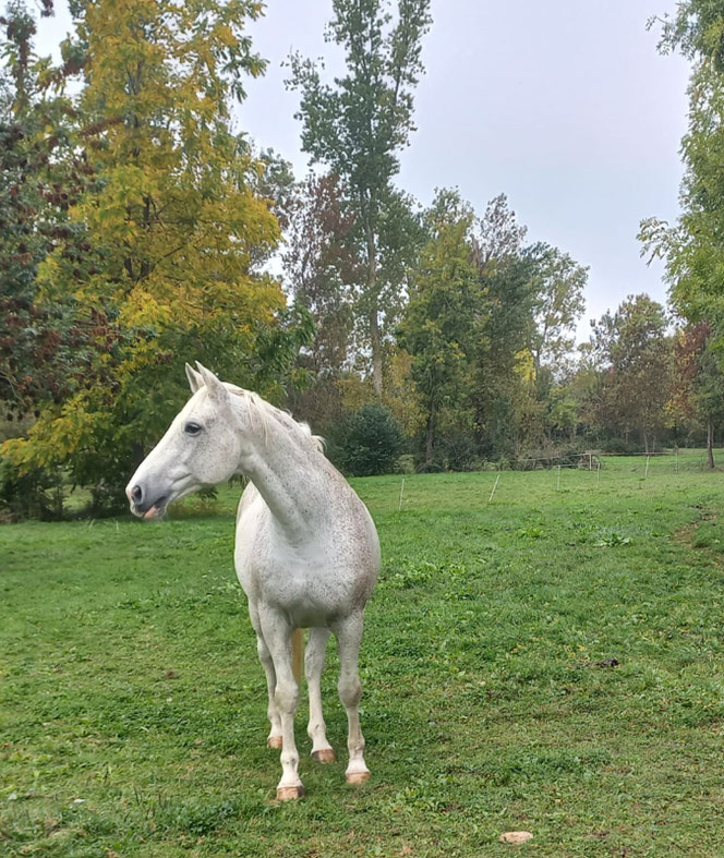 Trotteur français qui a été confié à l'association en 2019.Il ne peut pas être monté. Cheval très gentil mais une personne connaissant les chevaux est demandée.